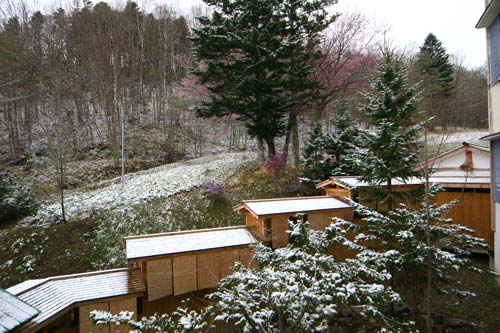 5月の渡り廊下で花見と雪見