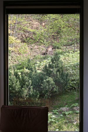 外にはエゾシカが。表で「ピィー ピィー」と、鳴き声が聞こえたら覗いてみてください。