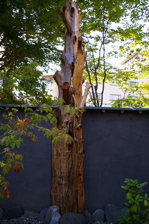 写真奥には、オンコの木を利用して作った目隠しの塀が立っています。