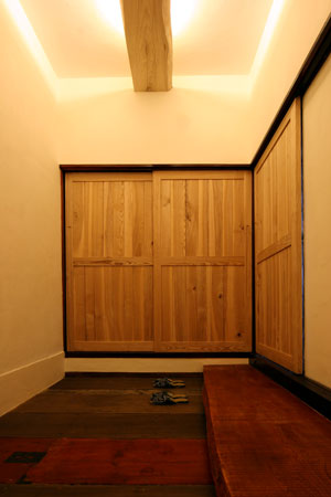 柱を入れ替え、床は畳から板張りに変更。断熱をし直し、漆喰壁で仕上げました。