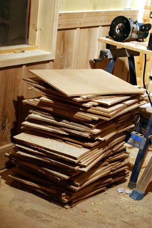 ベニヤ材を作る時にでる芯棒は間仕切りに再利用。