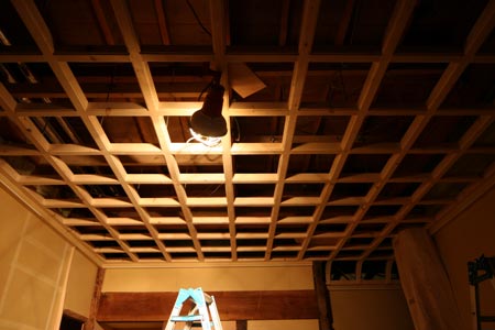 あとは天井に組んだ格子にはめ込めば出来上がりです。昨日の時点ではここまで。