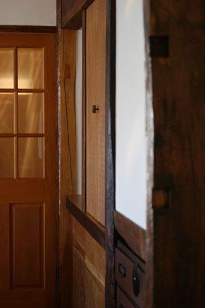 古い茶箪笥の引戸も再利用。再利用が好きなんです。