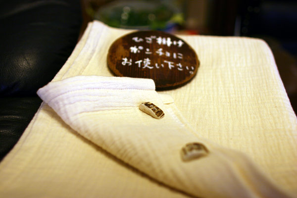 ボタンは裏の山で拾ったエゾ鹿の角。留めるとポンチョになります。