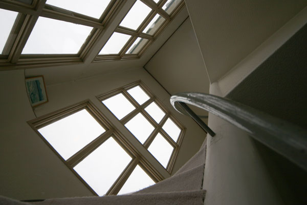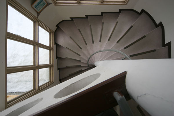 在庫整理と寒さ対策を兼ねて螺旋階段を二重窓に補強。