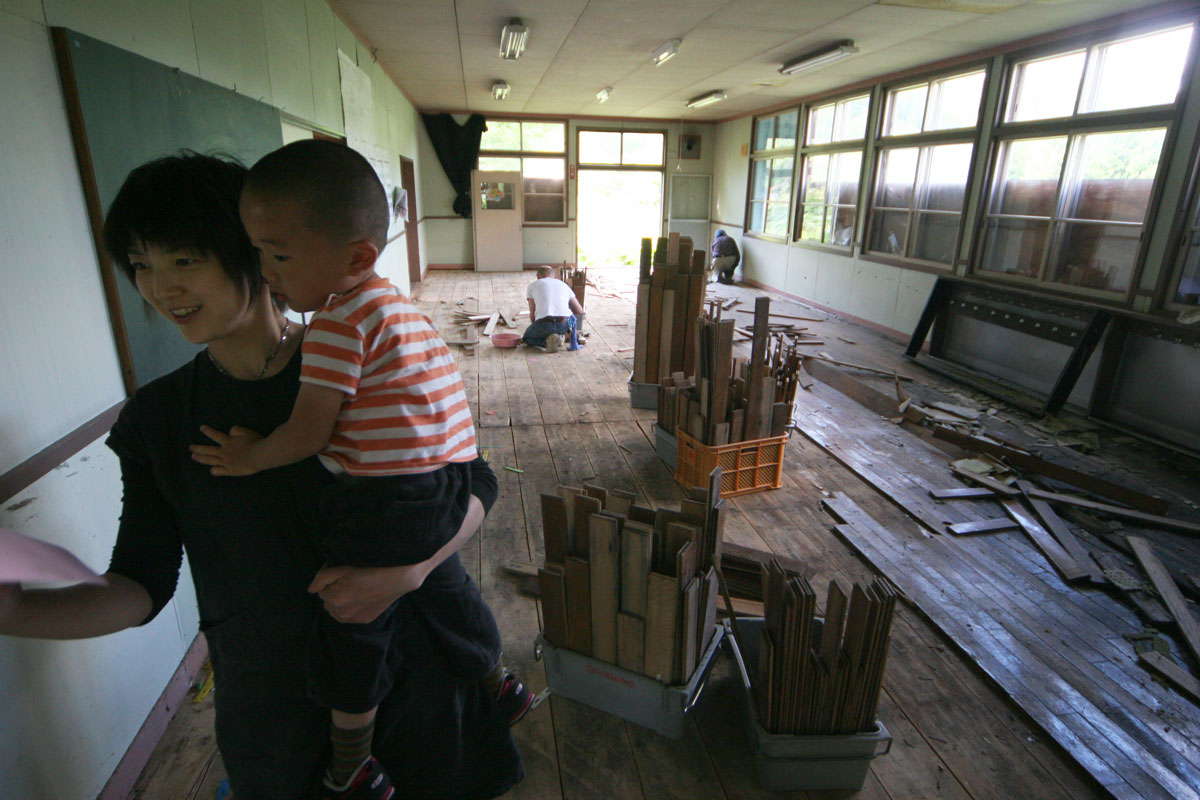 2004年に移転、2010年に取り壊された糠平へき地保育所の床材を流用。