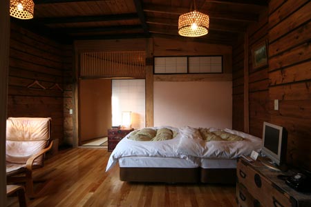 洋室部分はベッドが2台。小さなお子様連れの場合は繋げてお使い頂けます。