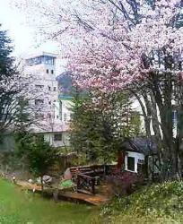 露天風呂のエゾヤマザクラがやっと見頃です。