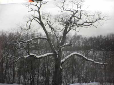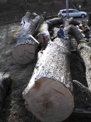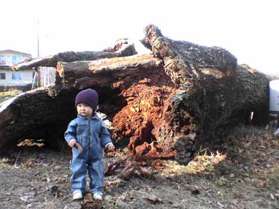 推定樹齢400年、町保存木のミズナラです。2年前の台風で倒れ、
